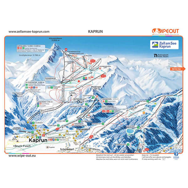 La Zell am See Kaprun Wipeout Plan des Pistes comprend le Schmittenhöhe à Zell am See et le Kitzsteinhorn Kaprun imprimés clairement sur les deux côtés d'un chiffon en microfibre. Il ne se déchirera pas et ne sera pas écorché et n'a pas besoin d'être soigneusement replié comme une carte en papier ! À 40 x 30 cm, il est assez grand pour envelopper vos lunettes, mais assez petit pour se glisser dans votre poche.
