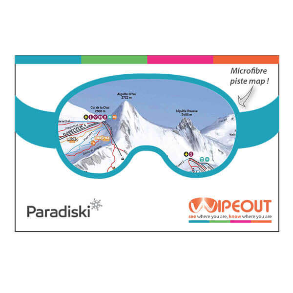 Wipeout Piste Maps are 30x40cm in size and come neatly packed in a paper pouch, with a goggle-shaped window! A great dual-purpose gift for any skier heading to Paradiski - "See where you are, know where you are!"